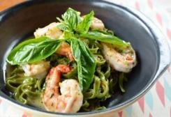 Scolare i tagliolini al dente e condirli con la salsa al peperone. Versarli sul piatto di portata e distribuirvi sopra i gamberetti. Servirli ben caldi.