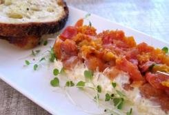 Disponete le freselle su un piatto di portata e farcitele con la tartare di pesce irrorando il tutto con il succo di un limone. Tagliate i pomodorini ben puliti a spicchi e disponeteli sul pesce. Terminate con un filo d’olio e servite.