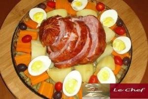 Depois de assado retire do forno, tire os cravos e sirva fatiado com frutas ou legumes.