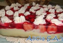 Os morangos cortados na transversal, coloque eles sobre todo o creme