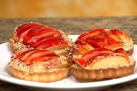 Espalhe uma camada de farofa, uma do creme com as maçãs e termine com a farofa.
