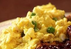 Versate il composto nella padella e fate cuocere finché le uova cominceranno a rassodarsi. Servite caldo.