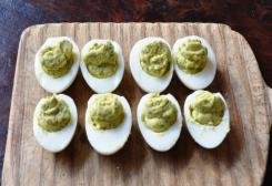 Farcire le mezze uova con il composto ottenuto e servire calde ma sono ottime anche fredde.