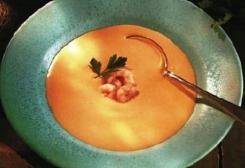 Filtrate la zuppa in una pentola pulita. Aggiungete la panna, ed ancora un po’ di succo di limone per insaporire, se lo gradite, poi versate la maggior parte dei gamberi messi da parte, e scaldate bene a fiamma media. Servite subito con i gamberi tenuti da parte e le foglie di prezzemolo.