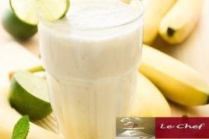 Bata o leite desnatado, a banana e a farinha láctea no liquidificador. Adoce a gosto e sirva gelado.