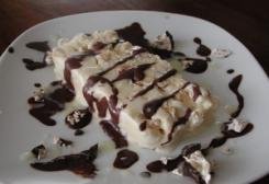 Una volta freddo, incorporate allo zabaglione il torrone, il cioccolato e le meringhe, quindi aggiungete gradatamente la panna montata, mescolando delicatamente con una spatola, con movimenti dal basso verso l’alto.