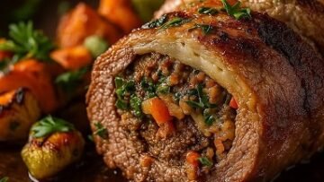 Rolo De Carne Recheado Com Queijo E Pimentão